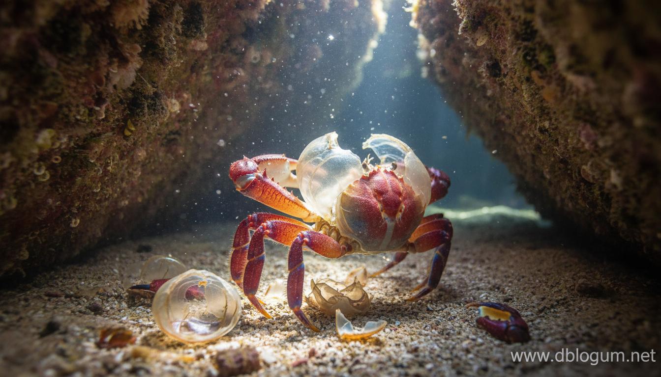 Yengeçler büyüdükçe vücutlarına dar gelen eski ve sert dış iskeletlerinden kurtulmak zorundadırlar; buna 'ecdysis' yani kabuk değiştirme denir. Bu süreçte yengeç, eski zırhından adeta bir eldiven gibi sıyrılır ve yerine gelen yeni, yumuşak dokunun sertleşmesi için birkaç gün boyunca gizlenir. Bu inanılmaz yenilenme süreci sırasında yengeç sadece dış görünüşünü değil, aynı zamanda gözlerini koruyan tabakayı ve hatta midesindeki bazı sert yapıları bile tamamen yeniler.